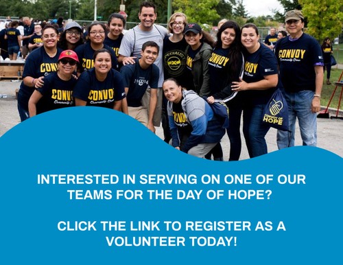 We need awesome volunteers just like YOU to serve on one of our many teams for the Day of Hope! Click the link below to register today as a volunteer.