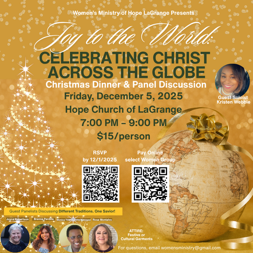 Join us for a beautiful evening of fellowship as we celebrate Christmas traditions from around the world! Enjoy dinner, fellowship, worship, and heartfelt stories that highlight the unity we share in Christ across every culture. Invite a friend and celebrate the joy of the season with us!